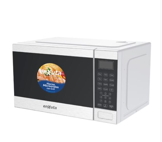 El Microondas Enxuta Mod 25L MOENXO325DG Digital con Grill Combinado Blanco combina eficiencia, estilo y gran capacidad para mejorar tu experiencia en la cocina. Con una capacidad de 25 litros, este microondas ofrece el espacio ideal para preparar desde platos simples hasta recetas más elaboradas. Además, gracias a su potencia de microondas de 850 Watts, tus alimentos se calientan de manera rápida y uniforme. Por otro lado, su grill de 1.000 Watts permite dorar, gratinar y obtener acabados profesionales sin esfuerzo. Asimismo, su diseño en color blanco aporta un toque moderno, mientras que la puerta con cierre de seguridad garantiza tranquilidad en cada uso.