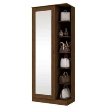 Por otra parte, su interior está pensado para brindar el máximo aprovechamiento. Cuenta con 6 repisas para calzado, perfectas para organizar múltiples pares de zapatos de forma accesible y ordenada. Asimismo, incorpora 5 repisas adicionales para guardar accesorios como bolsos, mochilas, sombreros o incluso pequeños objetos personales. Gracias a esta distribución, el mueble no solo cumple una función organizadora, sino que también aporta un valor estético y decorativo al ambiente. Su diseño inteligente permite mantener todo en su lugar, lo cual facilita la rutina diaria y mejora la funcionalidad del espacio.
